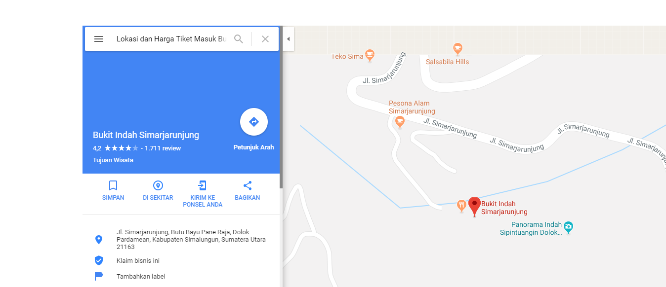 Bukit Indah Simarjarunjung Lokasi Biasanya para wisatawan yang sedang melakukan perjalanan ke danau toba melalui. Bukit indah simarjarunjung mendadak ramai diperbincangkan belakangan ini. Oh iya, yang agak susah ditemukan dalam perjalanan kami dari bukit simarjarunjung ke merek adalah tempat makan yang layak dan juga halal. Jika anda berminat untuk mengunjungi tempat ini di hari liburan nanti, anda bisa langsung menuju ke lokasi yang berada di daerah kabupaten simalungun.
