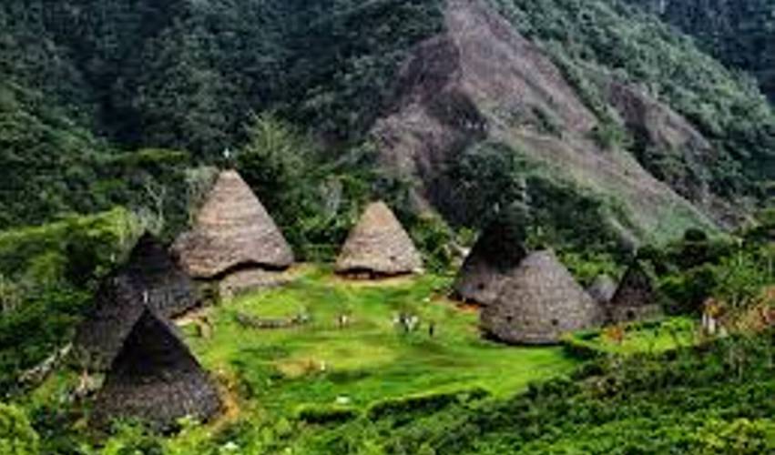 Dengan rumah berbentuk kerucut yang merupakan rumah asli orang manggarai yang masih ada sampai sekarang.